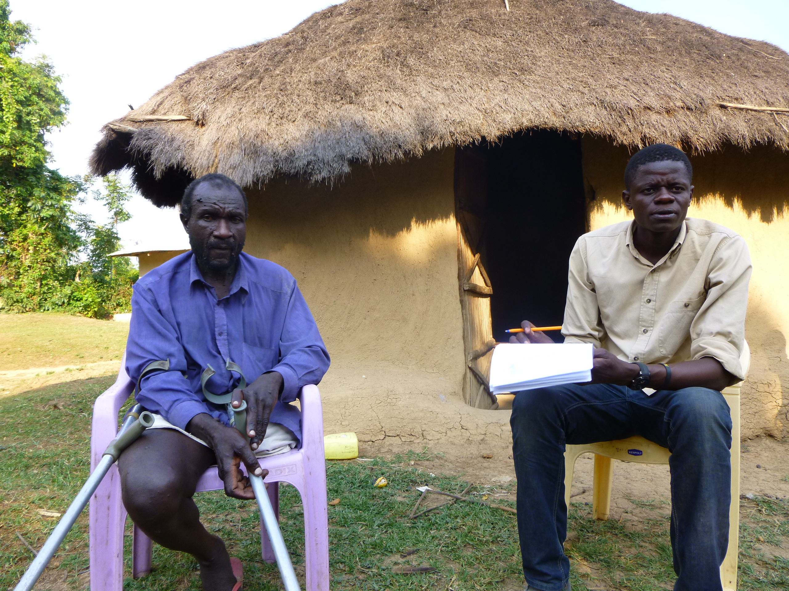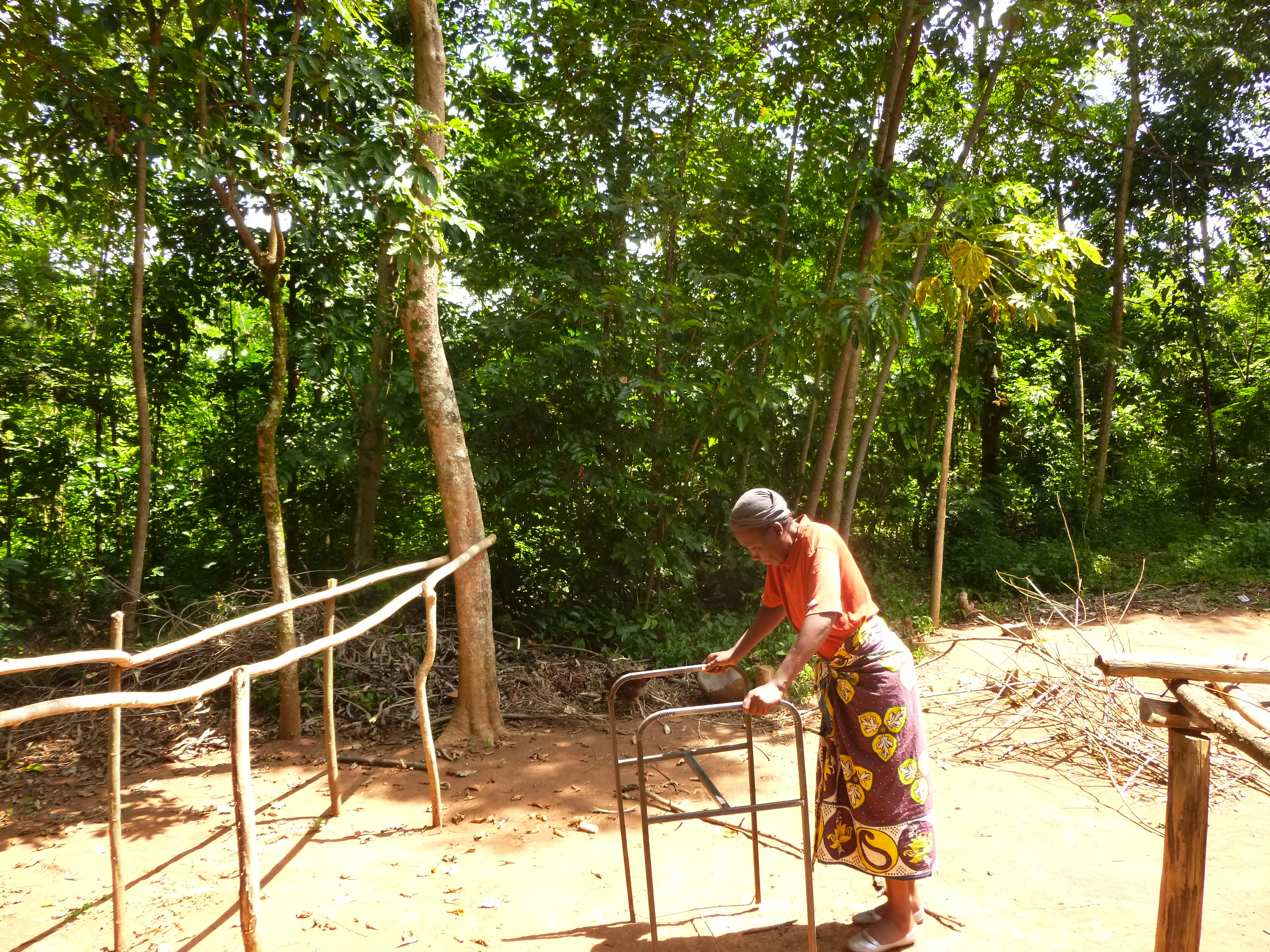 “As a last year student physiotherapist, these 2 weeks are full of rich experiences. Many pathologies that I know from the books, do actually appear here, and many times with secondary problems. For instance, we visited Henri, a HIV patient with the diagnosis of transverse myelitis caused by TB. CBR team International had visited him last year in the acute phase aswell. He was paralysed in the legs and he had a lot of pain the back. At that time, pressure relief positionings, transfert techniques and bowel massages were thaught to him. This year we were very eager to see how he is doing. After a year of regular home visits by our CBR worker Nick, and a lot of courage and motivation from Henri, he is walking independently again. In his garden we could find some parallel bars to do walking exercises. Thanks to CBR team International Henri also received cruthes. The next step is to built strength, to maintain mobility and to improve his walking pattern. Henri’s biggest wish is to get started again as a mecanic.