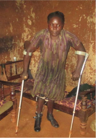 Roselyn, now 40 years old is a post-polio survivor who has lived with the condition for the last 36 years. Upon falling ill, her parents sought for her treatment by all means including engaging local massage experts who use herbs as treatment. She later got a knee abduction foot orthosis (KAFO) that broke and could not be replaced when her father passed away. This led to the end of her education in standard five since she could not go to school.