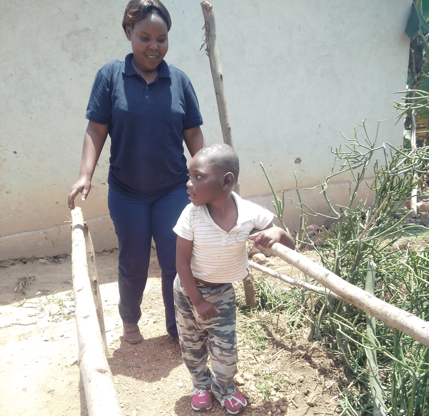He is an 8 year old boy with Cerebral Palsy, who lives in Nyanza district, Rwanda. He stays with his mother and grandmother, and brothers and sister. Prior to his meeting with Chantal, CBR field worker, Kelly was confined to the bed, or, at most to the living room mat. He was barely walking, with poor stimulation from his environment.